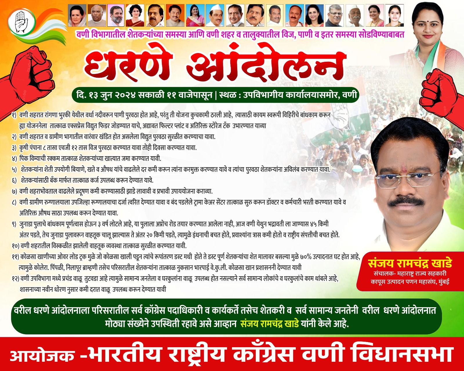 विविध मागण्यासाठी गुरुवारी वणीत काँग्रेसचे धरणे आंदोलन