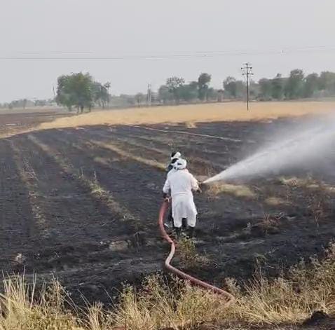 एक एकरातील काढणीला आलेल्या गव्हाला आग