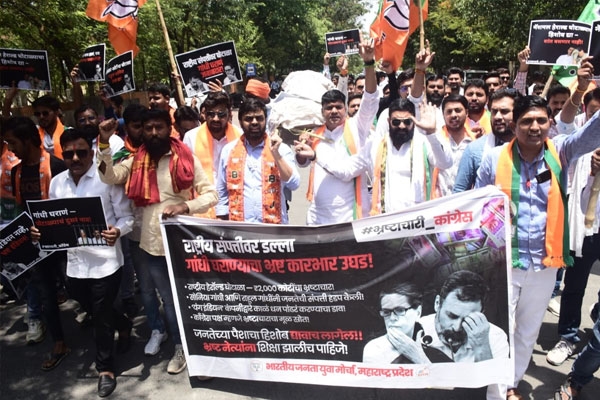नॅशनल हेरॉल्ड घोटाळा : काँग्रेस नेत्यांची प्रतीकात्मक प्रेतयात्रा