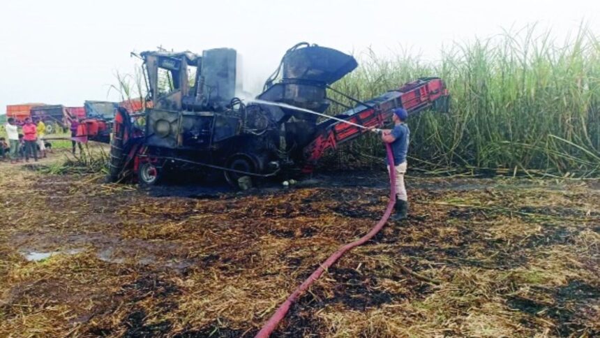 Parbhani: ऊसाच्या हार्वेस्टर मशीनने घेतला पेट