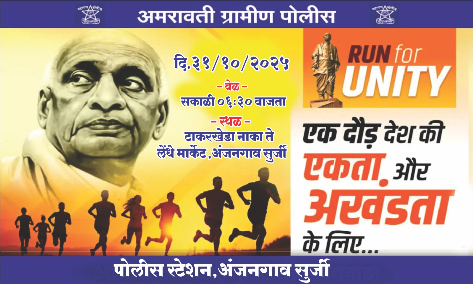 एकता आणि अखंडतेसाठी धावणार अंजनगाव सुर्जी – Run for Unity उपक्रमाचे आयोजन