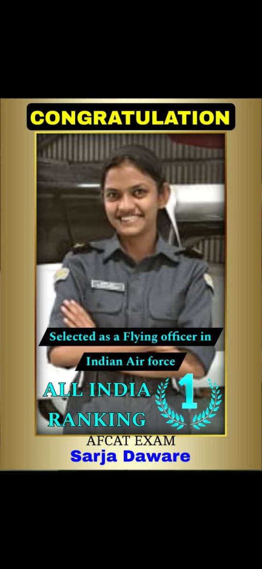 अमरावती : मनात जिद्द ,चिकाटी व काहीतरी करून दाखविण्याची ऊर्जा असेल तर कुठलेही असाध्य ध्येय साध्य करता येते. आपल्या इच्छाशक्तीला बुद्धिमत्ता, कुशल अभिक्षमता, अभ्यासुवृत्ती व परिश्रमाची जोड देऊन नवे क्षितिजे गाठता येतात. अशीच आकाशाला गवसणी घालण्यासाठी एक उत्तुंग भरारी अमरावतीच्या कु.सारजा शशिकांत डवरे हिने घेतली आहे. नवसारी- व्हिएमव्ही भागातील कु. सारजा शशिकांत डवरे हिने इंडियन एअर फोर्स तर्फे घेण्यात आलेल्या एएफसीएटी- परीक्षेमध्ये पहिली रँक मिळवून मुलींमध्ये पहिली मराठी फायटर पायलट होण्याचा मान मिळविला आहे. तिच्या या उत्युंग भरारी मुळे अमरावतीचा बहुमान उंचावला असून तिचे सर्वत्र कौतुक होत आहे. या नेत्रादीपक कामगिरी बद्दल सत्कार करण्याला घेऊन रविवार दिनांक ५ मे २०२४ रोजी सायंकाळी ७ वाजता स्वामी विवेकानंद थीम पार्क विलास कॉलनी जवळ कठोरा नाका अमरावती येथे सत्कार सोहळ्याचे आयोजन करण्यात आले आहे. यावेळी अमरावतीच्या आ. सौ. सुलभाताई संजय खोडके व माजी नगरसेवक प्रशांत डवरे यांची उपस्थिती राहणार आहे. सोबतच महाराष्ट्र दिनाच्या पार्श्वभूमीवर ‘मराठी पाऊल पडती पुढे” हा मराठी -हिंदी गीतांचा सुमधुर कार्यक्रम सादर होणार असून यामध्ये सुरमयी अविष्कार स्वराध्या संगीत संच अमरावतीच्या कलाकारांच्या वतीने संगीतमय प्रस्तुती देण्यात येणार आहे. यावेळी सर्वांनी उपस्थित राहण्याचे आवाहन प्रशांत डवरे मित्र परिवार व शिव संकल्प प्रतिष्ठान अमरावतीच्या वतीने करण्यात आले आहे.