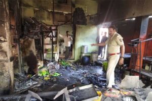 नेरपिंगळाई : स्थानिक भोजनपुरास्थित वासुदेव वासनकर यांच्या घरात फ्रीजच्या कॉम्प्रेसरचा स्फोट झाल्याने आग लागली. या आगीत कृषिसाहित्य, दुकानातील साहित्य, रोकड, कागदपत्रे व घरगुती साहित्य खाक झाले. ३ मे रोजी सकाळी साडेदहाच्या सुमारास ही घटना घडली. पोलिस सूत्रांनुसार, वासुदेव वासनकर यांचा एक मुलगा रवींद्र वरच्या माळ्यावर राहतो. शुक्रवारी सकाळी त्यांच्या घरातील फ्रीजचे कॉम्प्रेसर फुटले. यामुळे अचानक स्फोट होऊन घराला आग लागली. त्यात घरातील अन्नधान्य, कपडे जळून खाक झाले. अंगावरील कपडे तेवढे शिल्लक राहिले.