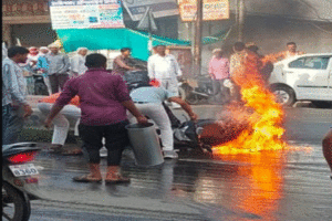 पं. प्रदीप मिश्रा सोमवारपासून अचलपुरात विद्यापीठाचे उत्कृष्ट सेवा गौरव पुरस्कार वितरित आकाशात सुर्याचा प्रताप सारखा सुरू असताना धारणी शहराच्या मध्यभागी असलेल्या चर्च चौकात स्कुटी दुचाकीने धावता धावताच विद्यापीठाचे उत्कृष्ट सेवा गौरव पुरस्कार वितरित आकाशात सुर्याचा प्रताप सारखा सुरू असताना धारणी शहराच्या मध्यभागी असलेल्या चर्च चौकात स्कुटी दुचाकीने धावता धावताच पेट घेतला. आग लागताच धावपळ सुरू झाली. चालक स्कुटी सोडून पळाला. चौकातल्या काही युवकांनी मिळेल त्या साहित्याचा वापर करून स्कुटीची आग पाणी टाकून विझविण्याचा प्रयत्न केला. काहीवेळात आग नियंत्रणात आली. सदर दुचाकीचा क्रमांक एमएच 27 एएल 9932 आहे. वाढलेल्या तापमाामुळे ही घटना घडली असावी, असा अंदाज सर्वांनीच व्यक्त केला आहे. नेमके कारण तपासात समोर येईल.