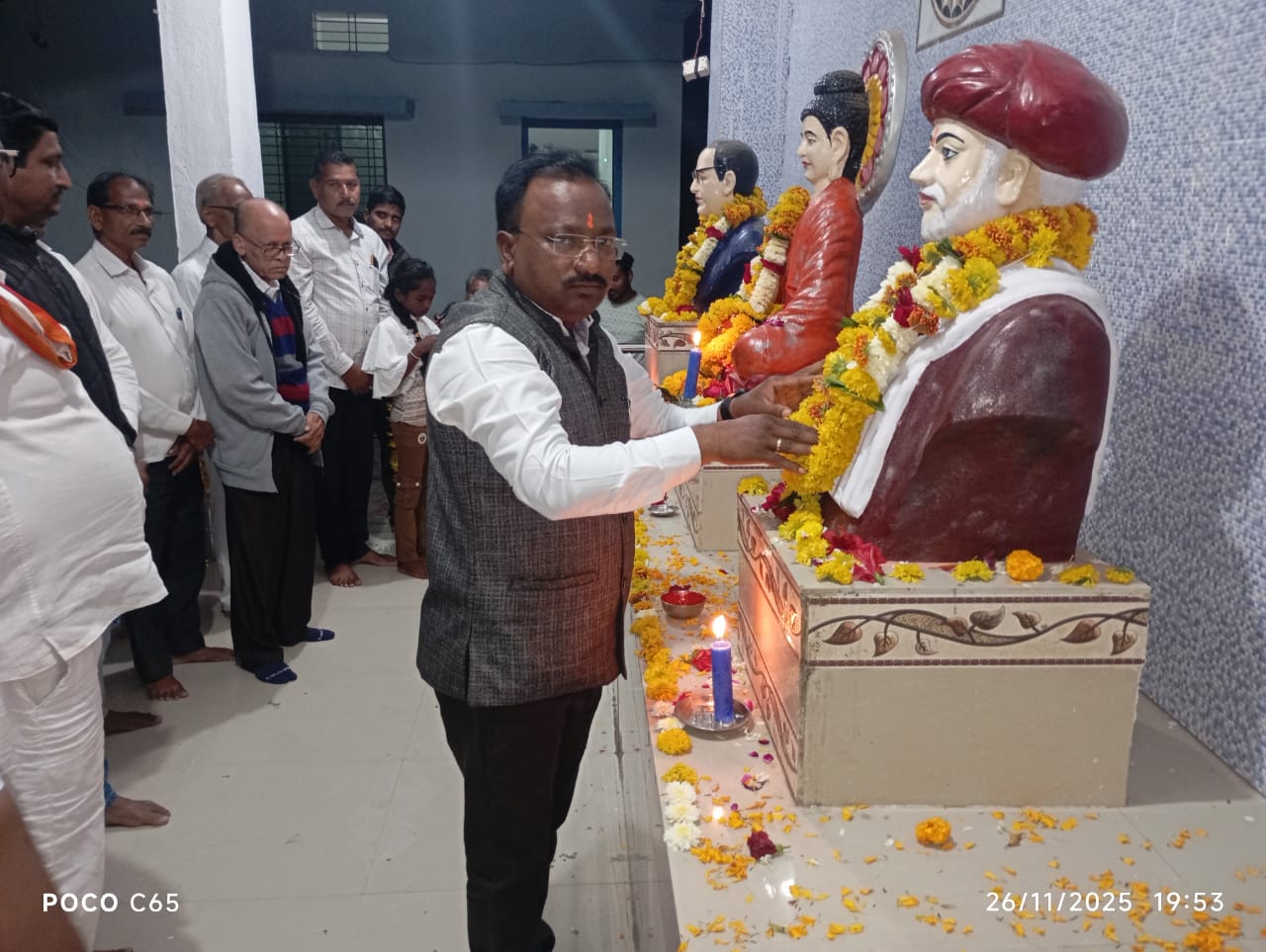 कार्यक्रमात प्रमुख वक्ते म्हणून उपस्थित पत्रकार मनोज मेळे यांनी भारतीय संविधानाचे महत्त्व प्रभावी शब्दांत उलगडले. “भारतीय संविधान ही आपल्या राष्ट्राच्या एकात्मतेची भक्कम पायाभरणी आहे. डॉ. बाबासाहेब आंबेडकरांची दूरदृष्टी नसती, तर हा देश तुटक वास्तवात विखुरला असता. आज आपण अनुभवत असलेले स्वातंत्र्य, समानता, न्याय व हक्क—हे सर्व संविधानाने दिलेली अनमोल देणगी आहे,” असे ते म्हणाले. त्यांच्या अभ्यासपूर्ण भाषणाने उपस्थितांमध्ये संविधाननिष्ठेची नवऊर्जा चेतवली.