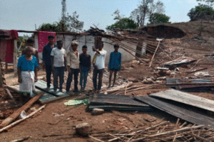 धारणी : मे महिन्याच्या दुसर्या आठवड्यात धारणी तालुक्याला दोनवेळा वादळ व अवकाळी पावसाने झोडपून काढल्याने आदिवासी शेतकरी हवालदिल झाला आहे. शुक्रवारी रात्री आलेल्या वादळाने अनेक घरांची पडझड झाली तर उन्हाळी मूग व भुईमूग पिकाला फटका बसला. नारवाटी गावात शेकडो पक्ष्यांचा मृत्यू झाला. अनेक कुटुंबांना रात्र उघड्यावर काढावी लागली. जवळपास 60 गावांचा वीज पुरवठा खंडित झाला आहे. दाबिदा गावात भिंत पडल्याने इसमाचा मृत्यू झाला.नारवाटी गावातील सामाजिक कार्यकर्ता इशान सुखदेवे यांनी दिलेल्या माहितीनुसार, रात्री आलेल्या वादळ व अवकाळी पावसामुळे गावात अनेक घरांची पडझड झाली. चिमण्यांचा मोठ्या प्रमाणात मृत्यू झाला. शनिवार 11 मेच्या सकाळी इतर पक्षी सुद्धा मृतावस्थेत आढळले. घरांची पडझड झाल्याने जीवनावश्यक साहित्याचे नुकसान झाले. विजेचे खांब वाकल्याने तार तुटल्या, पर्यायाने वीज पुरवठा खंडित झाला. जनक्रांती सेनेचे मन्ना दारसिंबे यांनी बिजुधावडी गावाला भेट देऊन पाहणी केल्यावर अधिकाऱ्यांशी संपर्क साधून तात्काळ पंचनामे करण्याची विनंती केली. बिजुधावडी येथील डझनावर घरांचे नुकसान झाले आहे. दाबिदा गावातील प्रेमलाल श्यामलाल भिलावेकर (38) याचा अंगावर भिंत पडल्याने जागीच मृत्यू झाला. पोलिस निरीक्षक अशोक जाधव यांच्या मार्गदर्शनात पोलिस कर्मचारी नितीन बहुरसिया व पोलिस पाटील गजानन जामनिक यांनी पंचानामा करून मृतदेह धारणी उपजिल्हा रुग्णालयात आणला. तालुक्यातल्या दाबिदा, खारी, नारवाटी, पाचरपूर, बिजुधावडी, घुटी, टिटम्बा, टिंग, अम्बाडी, रोहणीखेडा व अन्य गावात घरांची पडझड झाली. उन्हाळी पिकांना नुकसान झाले.धारणी शहरालाही वादळ व पावसाचा फटका बसला. अनेक गावातला वीज पुरवठा अद्यापही पूर्ववत झालेला नाही. आदिवासी बांधव अवकाळी पावसाने हैराण झाले आहे.
