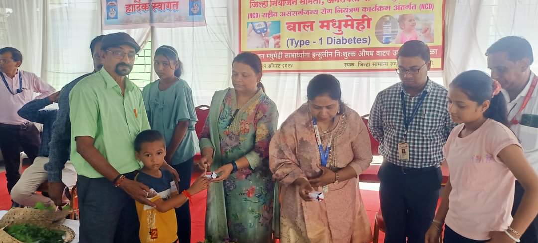 जिल्हा सामान्य रुग्णालय, आयएमए व मधुमेह संघटना यांच्या संयुक्त विद्यमाने बाल मधुमेह रुग्णांना मोफत इंजक्शन इन्सुलीन व जनजागृती कार्यक्रमाचे आयोजन करण्यात आले होते. यावेळी अतिरिक्त शल्य चिकित्सक डॉ. संतोष राऊत, मधुमेह संघाचे अध्यक्ष डॉ. अजय डफडे, उपाध्यक्ष डॉ. शर्मिला बेले, विभाग प्रमुख डॉ तृप्ती जवादे, आईएमएचे अध्यक्ष डॉ. अनुपम देशमुख, सचिव डॉ. शर्मिष्टा बेले आदी अधिकारी वर्ग उपस्थित होते.