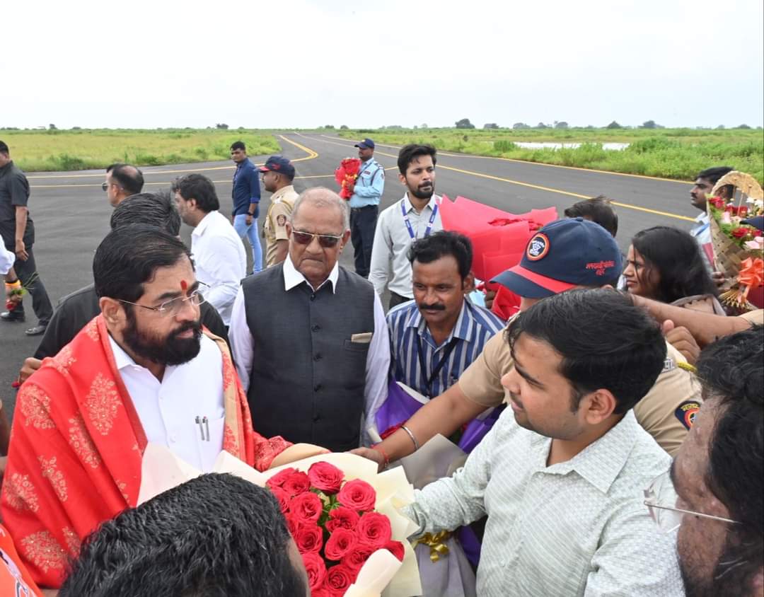 अमरावती, : राज्याचे मुख्यमंत्री एकनाथ शिंदे यांचे आज अमरावती येथील बेलोरा विमानतळावर आगमन झाले. यावेळी मुख्यमंत्री एकनाथ शिंदे यांच्यासमवेत उपमुख्यमंत्री देवेंद्र फडणवीस, उपमुख्यमंत्री अजित पवार यांचे आगमन झाले. यावेळी प्रशासनाच्यावतीने जिल्हाधिकारी सौरभ कटियार यांनी पुष्पगुच्छ देऊन मंत्री महोदयांचे स्वागत केले.