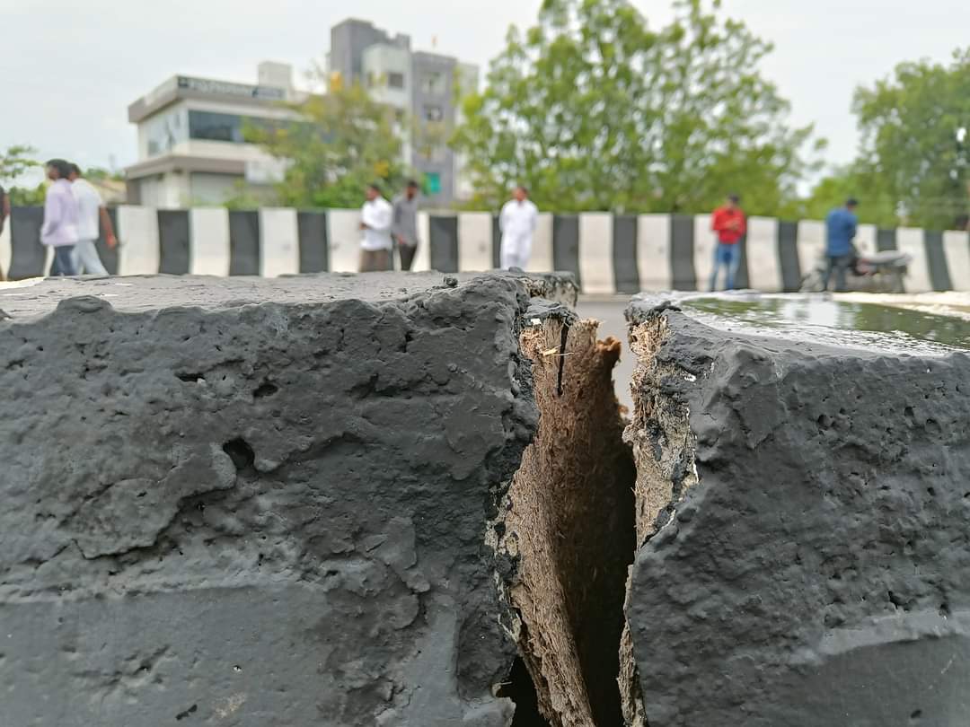 अमरावती : राष्ट्रीय महामार्ग क्र. ६ या मार्गावर अमरावती शहरानजीक रहाटगावजवळील गौरी इन हॉटेलजवळ असलेल्या उड्डाणपुलाचे काम हे निकृष्ट दर्जाचे झाले असून, अनेक ठिकाणी तडे गेले आहे. या गंभीर बाबीची दखल घेत रविवारी खासदार बळवंत वानखडे यांनी उड्डाणपुलाची केली. त्यानंतर त्वरेने सोमवारी युद्धस्तरावर डांबरीकरणाची कामे करण्यात आली. मात्र, सहा महिन्यांतच पुलाला तडे गेले आणि डांबरीकरणाची कामे उखडल्यामुळे राष्ट्रीय महामार्ग रस्ते प्राधिकरणाच्या कामांचा दर्जा कसा आहे, हे दिसून येते.