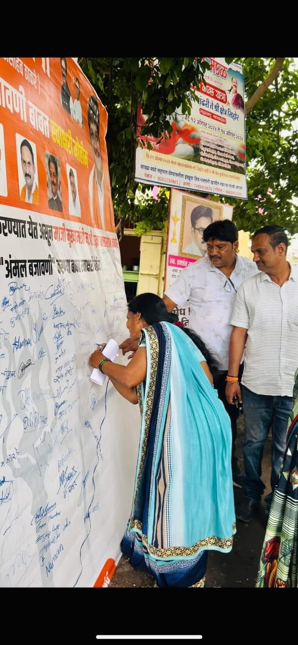 महिलांवर सातत्याने होणाऱ्या अत्याचारांच्या विरोधात निषेध करण्यात येत असून माजी मुख्यमंत्री शिवसेना पक्षप्रमुख श्री उद्धव बाळासाहेब ठाकरे यांनी मंजूर केलेल्या शक्ती कायद्याची अंमल बजावणी करण्याबाबत अंजनगाव सुर्जी येथे शिवसेनेच्या वतीने ( उबाठा गट) स्वाक्षरी मोहीम राबविण्यात आली आहे. हया मोहीमेचे आयोजन शिवसैनिक गजानन लवटे यांनी केले होते.तरी शिवसेना अंजनगाव सुर्जीच्या वतीने नागरिकांनी व शिवसैनिकांनी मोठ्या प्रमाणात स्वाक्षरी मोहीम मध्ये सहभाग नोंदवला.हयावेळी समस्त नागरिक तसेच उध्दव बाळासाहेब ठाकरे गटाचे सर्व पदाधिकारी तसेच कार्यकर्ते उपस्थित होते.