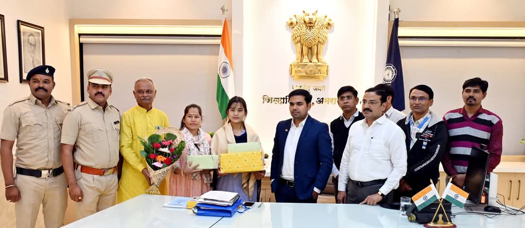 जिल्हाधिकाऱ्यांच्या हस्ते करीना थापाचा सत्कार